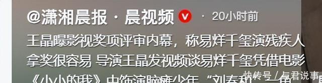 直到11月28日,王晶导演在直播的时候,谈到了为什么演员都喜欢拿奖来证明自己,甚至还谈到了影视奖项的评审“内幕”。 王晶表示,易烊千玺专挑一些有难度的角色来演,其实演残疾人拿奖还是比较容易的。